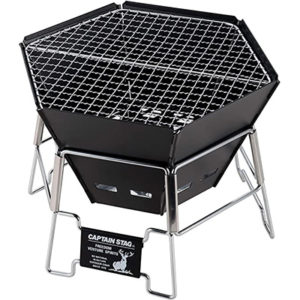 【CAPTAIN STAG】バーベキューコンロ 焚火台 1台2役 ヘキサステンレス ファイアグリル バッグ付き Mサイズ