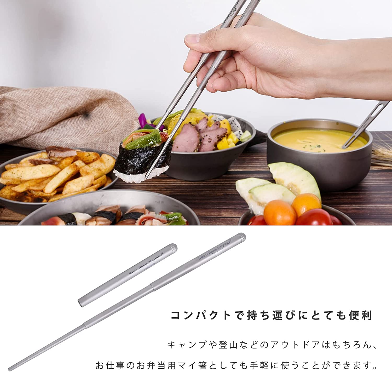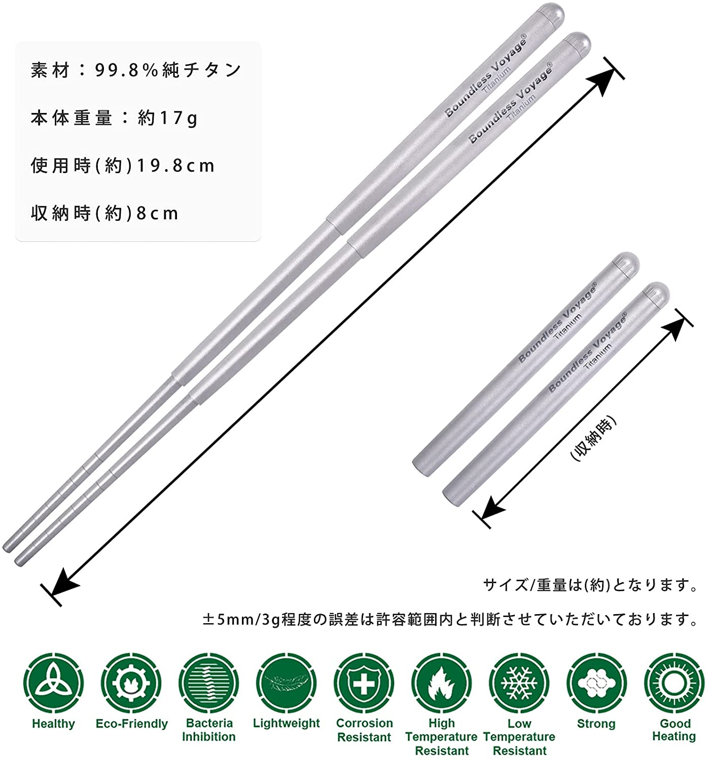 - 箸先も含めてすべてチタン製なので、サビや木製のようにカビの心配がありません。
