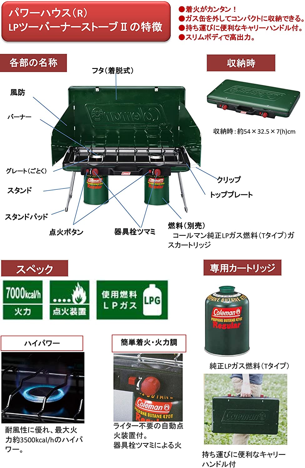 持ち運びに便利なキャリーハンドル付き スリムボディーの高火力LPツーバーナー