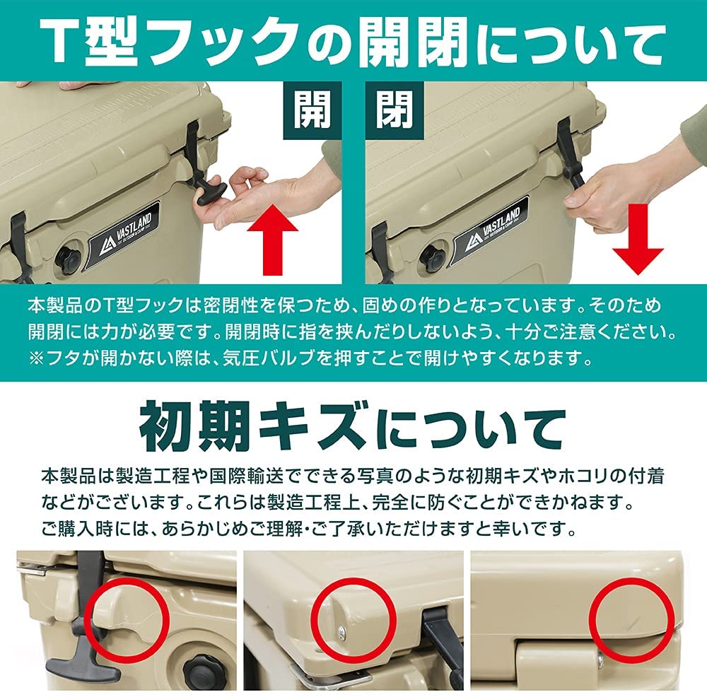 - 「ロトモールド(回転成形)」という特殊な成型方法により製造されています。これにより「繋ぎ目なし=高い耐久性」の一体構造を実現し、「耐久性」の面でキャンプや釣りなどハードな場面でも問題なくご使用頂けます。