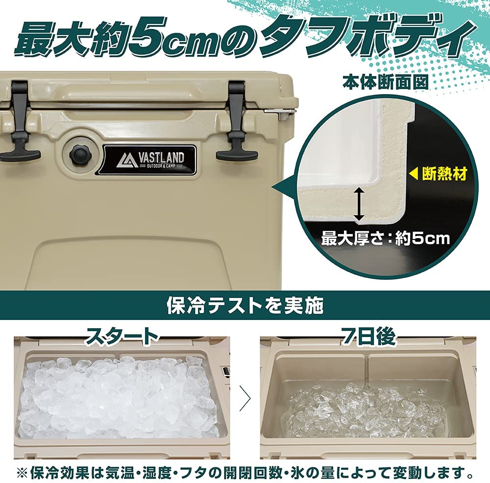 - 高い「保冷力」と「耐久性」を兼ね備えた「タフ」なハイエンドクーラーボックスです。